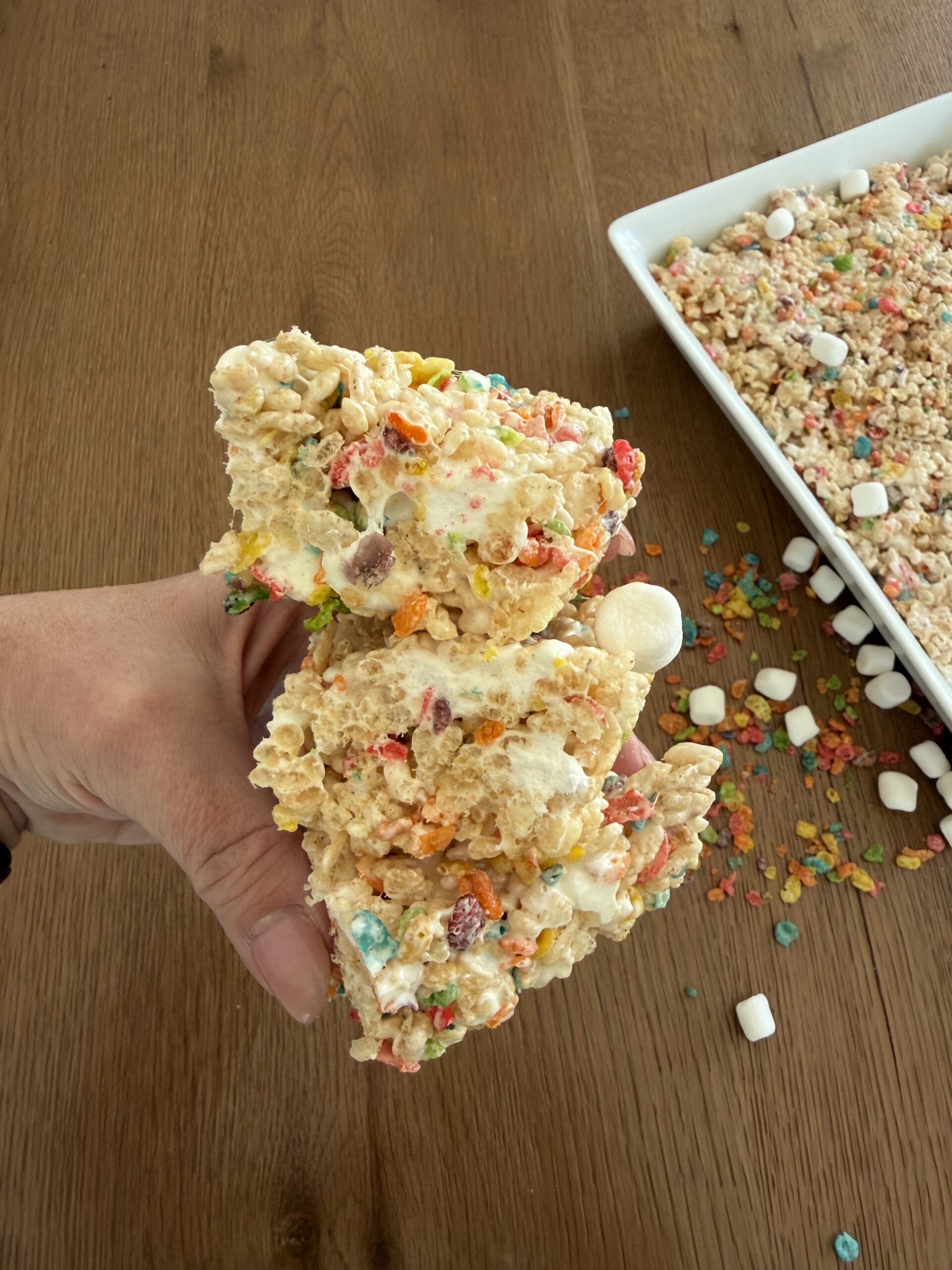 If you grew up loving traditional rice crispy treats, this version is about to blow your mind. It’s everything you remember—gooey, buttery, and satisfying—but with an added burst of fruity sweetness and a rainbow of colors that make every bite feel like a celebration.